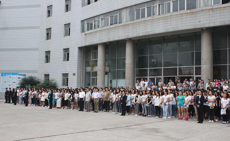 2014年9月1日上午7時30分,我校分別在南北校區舉行新學期第一次升旗儀式。焦作大學黨委書記郭維杰、黨委副書記焦金雷、副校長馬韻新、工會主席楊中漢、紀委書記張浦、外語學院全體師生在和諧廣場共同參加了南校區升旗儀式。焦作大學黨委副書記、校長林效廷,副書記、副校長楊家卿、副校長申文波以及藝術學院全體師生在北校區主教學樓廣場參加了北校區升旗儀式。學校全體管理服務人員也參加了升旗儀式。
