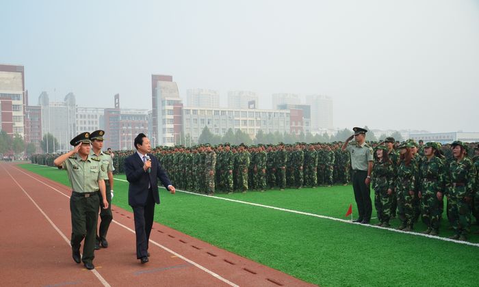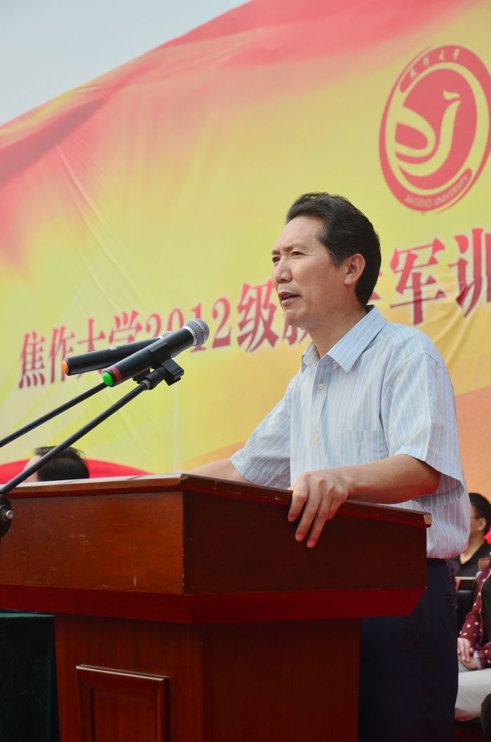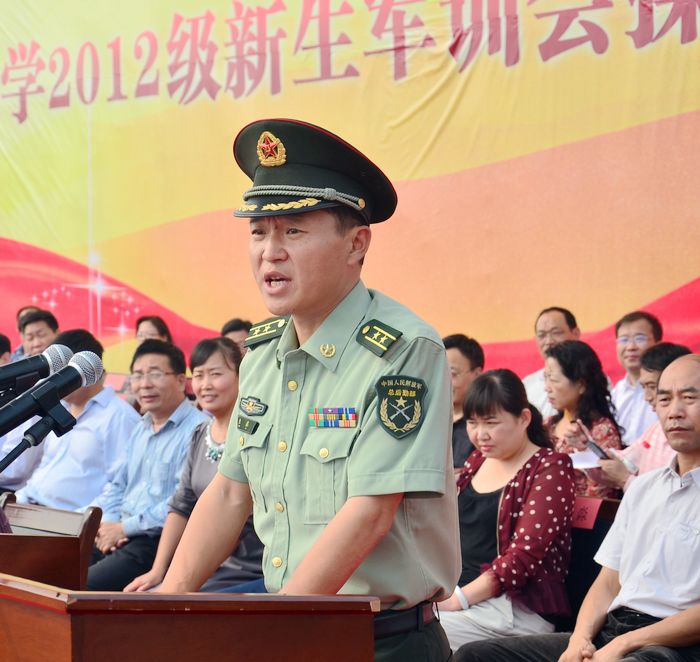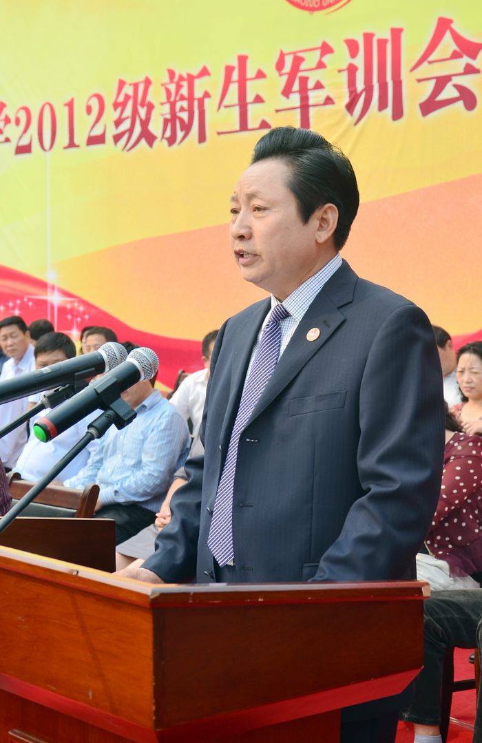 分列式結束后,袁基副團長對我校的軍訓成果給予了充分肯定,指出軍訓在大學生活的特殊意義,也對2012級新生提出了殷切希望。林校長代表全校師生向62111部隊贈送了錦旗,“軍民合作建平安校園 無私奉獻育祖國棟梁”,表達了對62111部隊的感謝。林校長對2012級新生作了三點要求:一、認知新環境,開啟新里程;二、明確新目標,激發內動力;三、做出新努力,實現新跨越。希望同學們三年奮斗,三年積累,三年收獲,將濃濃的愛國情懷轉化為報效祖國的不衰之志,將樸素的父母養育之恩轉化為報答之能,將焦大老師們付出的教育之愛將變成堅實的成才之果。林校長激情洋溢的講話使廣大新生深受鼓舞,讓同學們對未來的大學生活也有了更加明確的目標,講話過程中同學們不斷報以熱烈的掌聲。焦書記希望大家按軍隊領導及校長的講話要求,嚴格要求自己,發揚軍訓中不怕苦,不怕累的拼搏精神,勤奮學習,把握自己,遵守紀律,奮力攀登,努力完成學業。預祝2012級新生健康成長,前程輝煌。
