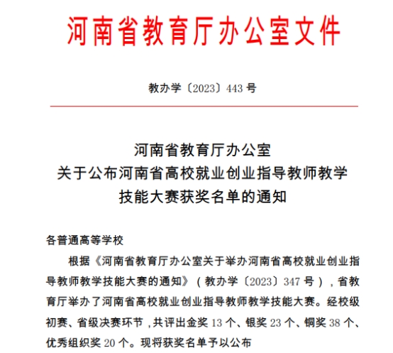 12月2日至3日,2023年河南省高校就業創業指導教師教學技能大賽(專科組)在黃河水利職業技術學院舉行。我校教師岳軍平、呂楠雙雙斬獲銀獎。