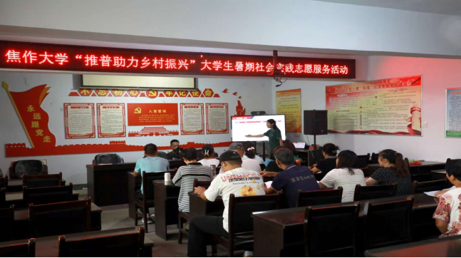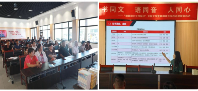 活動過程中,團隊成員利用海報橫幅、實地調(diào)研、深入采訪、朗讀測評、專業(yè)展示等多種方式和渠道進行普通話宣傳與推廣,根據(jù)不同群體和需求進行普通話交流與輔導(dǎo),積極宣傳講好普通話對于鄉(xiāng)村振興的重要意義,引導(dǎo)村民積極學(xué)習(xí)、使用普通話。