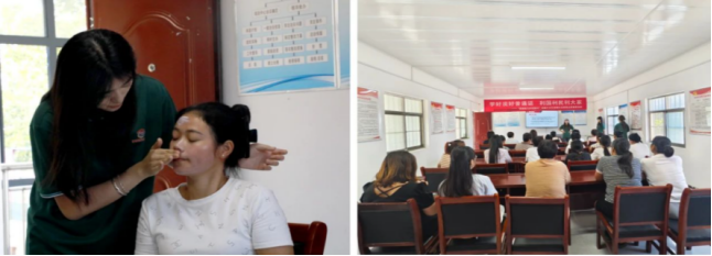 針對農(nóng)村留守婦女,團隊以《普通話與形象禮儀》為主題開展培訓(xùn),從普通話語音、日常妝容打造、形體禮儀三個方面進行輔導(dǎo),通過理論講授、互動練習(xí)、實際操作等環(huán)節(jié),鼓勵引導(dǎo)農(nóng)村婦女提升個人整體形象,說好普通話,用好普通話,在參與鄉(xiāng)村振興中貢獻(xiàn)巾幗力量。