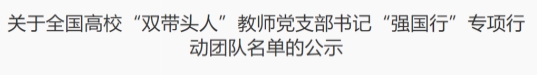 近日,教育部思想政治工作司公示了全國高校“雙帶頭人”教師黨支部書記“強國行”專項行動團隊名單,我校機電工程學院教工黨支部成功入選。