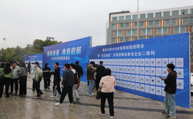 為深入貫徹黨的二十大和二十屆二中、三中全會精神,落實《中共中央國務(wù)院關(guān)于實施就業(yè)優(yōu)先戰(zhàn)略促進(jìn)高質(zhì)量充分就業(yè)的意見》文件精神,進(jìn)一步發(fā)揮高校校園招聘主渠道作用,大力拓展崗位資源,全力促進(jìn)畢業(yè)生實現(xiàn)高質(zhì)量充分就業(yè),焦作大學(xué)于10月18日在圖書館廣場舉辦2024年秋季校園招聘會暨“宏志助航”專場招聘會。焦作市山陽區(qū)委副書記、區(qū)長侯向陽,焦作大學(xué)黨委書記汪詩懷、副校長林鄧偉到招聘會現(xiàn)場指導(dǎo)調(diào)研工作。