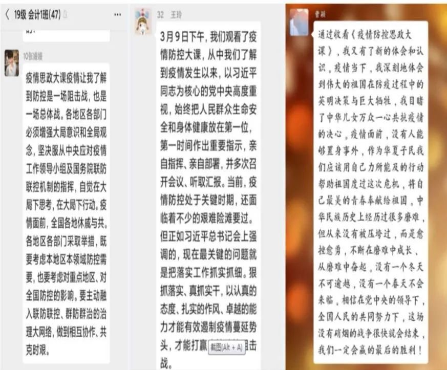 這堂90分鐘的思政課,充分發揮了高校思政課落實立德樹人根本任務的關鍵課程作用,四位教授將疫情防控工作涌現的案例轉化為鮮活課堂,既蘊含豐富的理論知識,又與新時代疫情防控的責任擔當緊密結合,引發了同學們線上的熱烈討論。