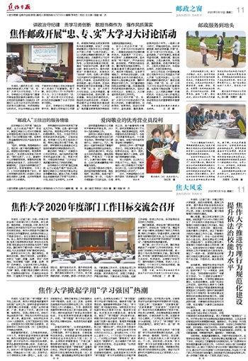 《焦作日報》:焦作大學2020年部門工作目標交流會召開;焦作大學推進管理行為規范化建設提升依法治校能力水平;焦作大學掀起學用“學習強國”熱潮