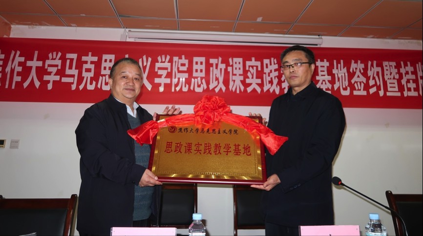 11月13日,焦作大學法律與政治學院(馬克思主義學院)思政課實踐教學基地掛牌儀式在西滑封精神干部培訓中心舉行。西滑封村黨委委員、西滑封精神干部培訓中心主任王有三、焦作大學法政學院黨總支書記張育琳、院長李世偉、副院長趙語慧及師生代表30余人參加掛牌儀式,儀式由焦作大學法政學院辦公室主任王長林主持。