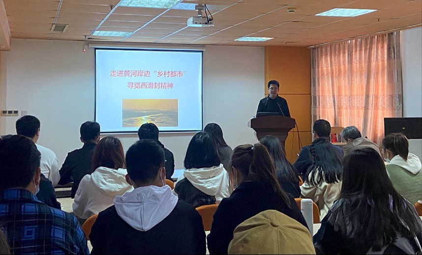 儀式結束后,師生們參觀了西滑封精神展覽館。《思想道德修養與法律基礎教研室》主任李國防對學生進行了題為“走進黃河岸邊‘鄉村都市‘ 尋覓西滑封精神”的現場教學。