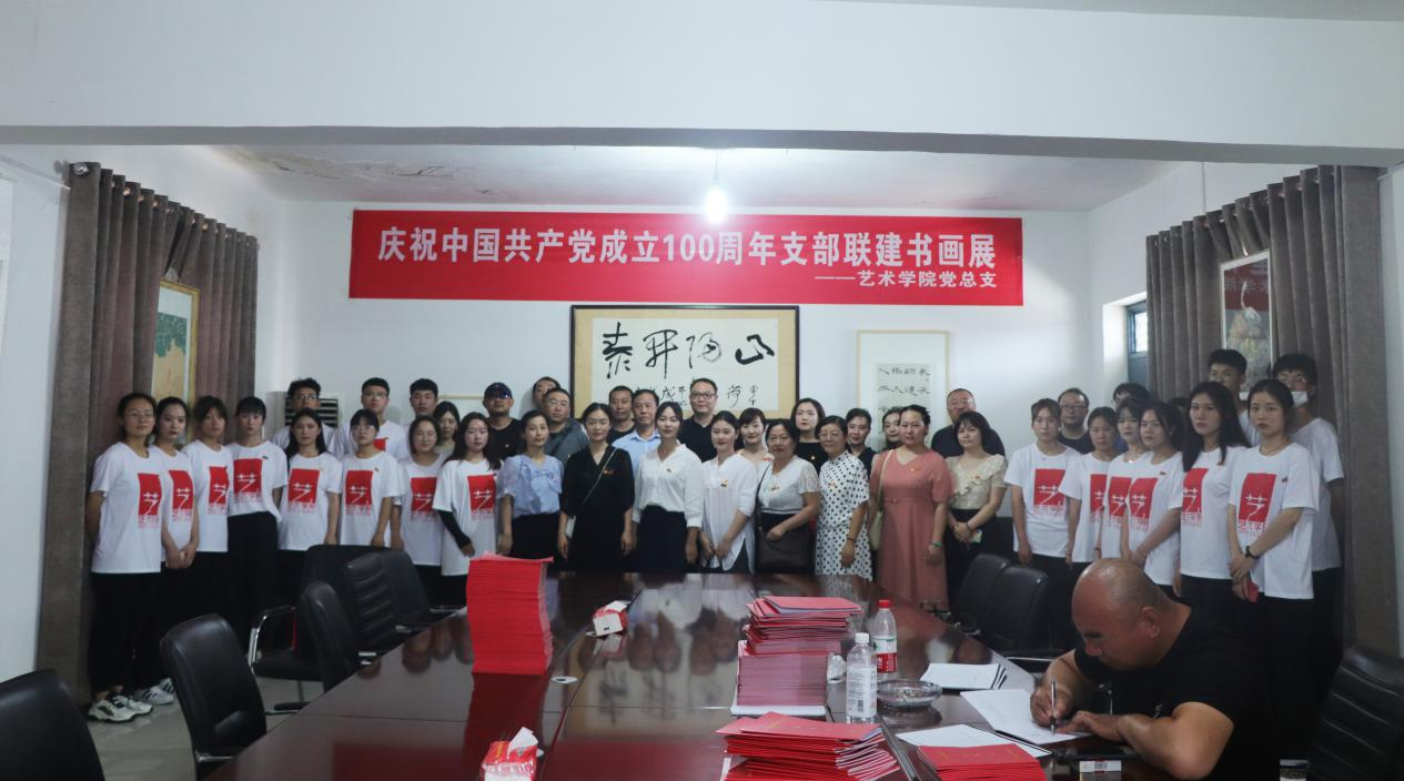 為營造慶祝建黨100周年活動氛圍,學院精心準備了師生書畫作品20余件,在焦作市墻南村委舉辦了支部聯建書畫展,以丹青筆墨慶祝黨的百年華誕的深厚情感,師生們一同觀看了畫展。