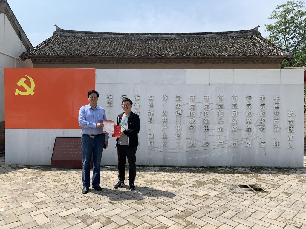在狼牙壯士宋學義故居,通過聆聽講解,觀看圖片、文字和實物,全體黨員深刻認識了宋學義的英雄事跡和他光輝感人的一生,深切地感受到狼牙壯士宋學義等抗日英雄的愛國主義、革命英雄主義精神和堅貞不屈的民族氣節。在宋學義故居前,全體黨員面對黨旗,舉起右手莊嚴宣誓,重溫入黨誓詞。隨后,黨支部為5月份入黨的同志送上政治生日賀卡,進一步傳遞了組織的關懷,增強黨員意識,固牢初心使命。