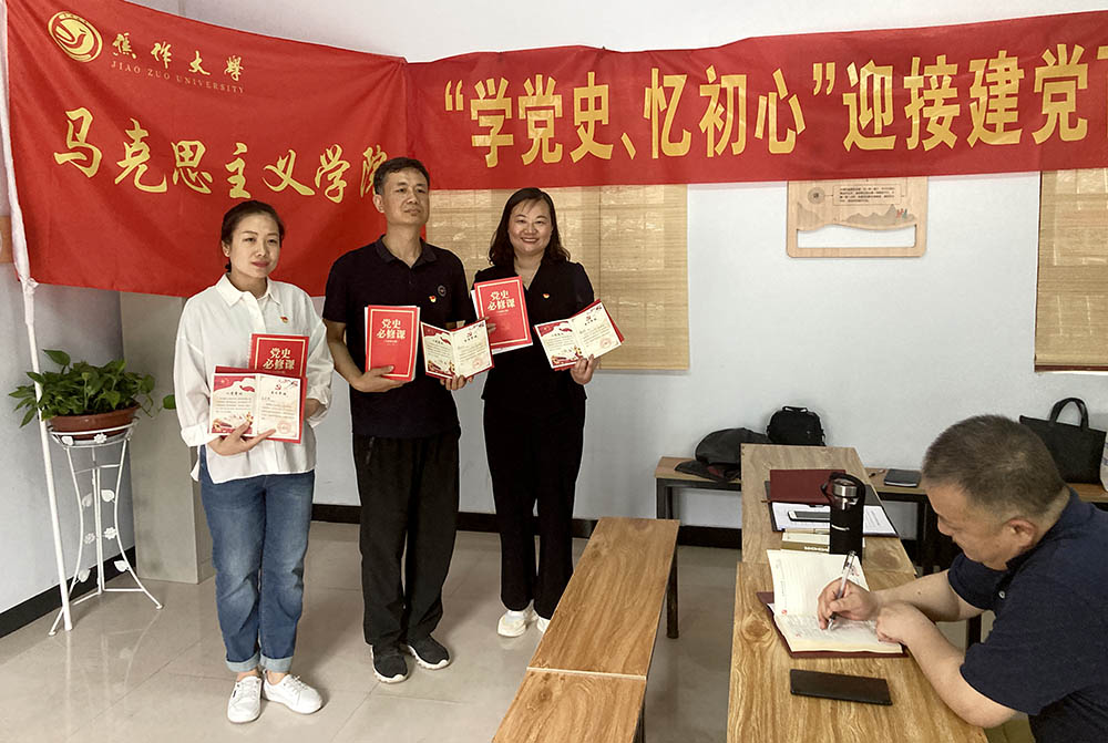為慶祝中國共產(chǎn)黨成立 100 周年,持續(xù)鞏固“不忘初心、牢記使命”主題教育成果,推動黨史學(xué)習(xí)教育走深走實,引導(dǎo)廣大黨員不忘入黨初心、牢記職責(zé)使命,5月14日,馬克思主義學(xué)院黨總支到博愛縣許灣村革命根據(jù)地舊址,開展了“學(xué)黨史、憶初心”迎接建黨百年主題黨日活動。