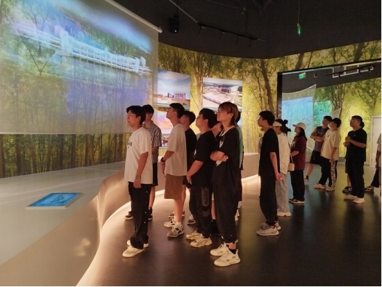 跟隨講解員的步伐,學生們依次參觀了序廳、基本陳列廳以及故鄉之水、和諧征遷、復興之水三個專題展廳。