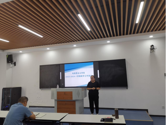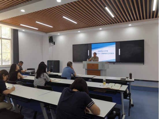 2023年8月28日下午,馬克思主義學院在紅色思政教室召開2023~2024年第一學期教學工作會議,學院領導班子及全體思政課教師參加。