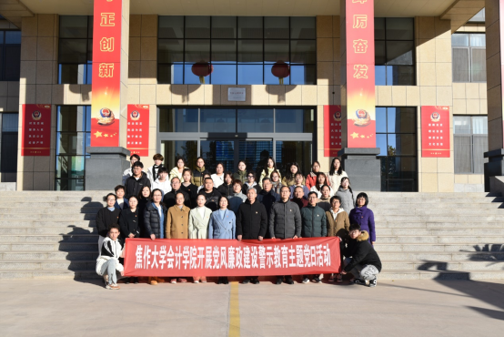 為積極響應(yīng)校紀(jì)委有關(guān)深入開展“學(xué)黨規(guī)黨紀(jì),做清廉表率,當(dāng)干事先鋒”為主題的黨風(fēng)廉政活動(dòng)月的號(hào)召,近日會(huì)計(jì)學(xué)院黨總支組織教工黨支部和學(xué)生黨支部的全體黨員到河南省焦作監(jiān)獄開展“黨風(fēng)廉政建設(shè)警示教育”主題黨日活動(dòng)。