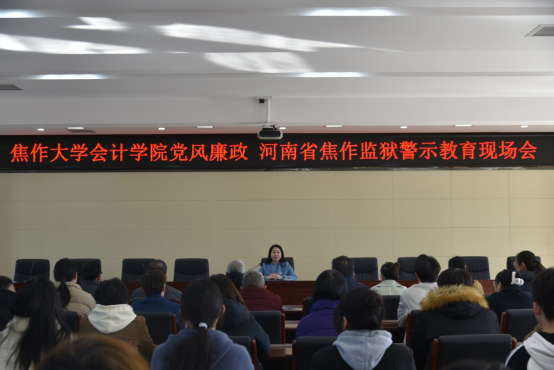 河南省焦作監(jiān)獄專門為本次活動(dòng)舉行了“焦作大學(xué)會(huì)計(jì)學(xué)院黨風(fēng)廉政 河南省焦作監(jiān)獄警示教育現(xiàn)場(chǎng)會(huì)”,兩位經(jīng)濟(jì)犯罪的服刑人員現(xiàn)身說法,給大家上了一堂觸及靈魂的警示教育課。他們本來(lái)是前途一片光明的兩位大學(xué)畢業(yè)生,有體面的工作和令人羨慕的家庭,但由于對(duì)金錢的過度向往和個(gè)人私欲的膨脹,最終走上了犯罪的道路,令人唏噓,發(fā)人深省。最后,會(huì)計(jì)學(xué)院黨總支書記孔維麗做了總結(jié)發(fā)言,她指出黨員干部要從典型案例中吸取教訓(xùn),一定要警鐘長(zhǎng)鳴,牢記入黨初心,遵守黨規(guī)黨紀(jì),爭(zhēng)當(dāng)干事創(chuàng)業(yè)的模范先鋒。