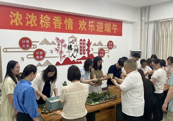教職工們一起迎端午,增進彼此之間的聯系與互動,也送上各自的節日祝福。通過參與包粽子、系五彩繩、送香囊、贈祝福等民俗文化活動,大家更真切地感受到了中國傳統文化的魅力,學習了更多傳統工藝,鍛煉了動手能力和學習能力。